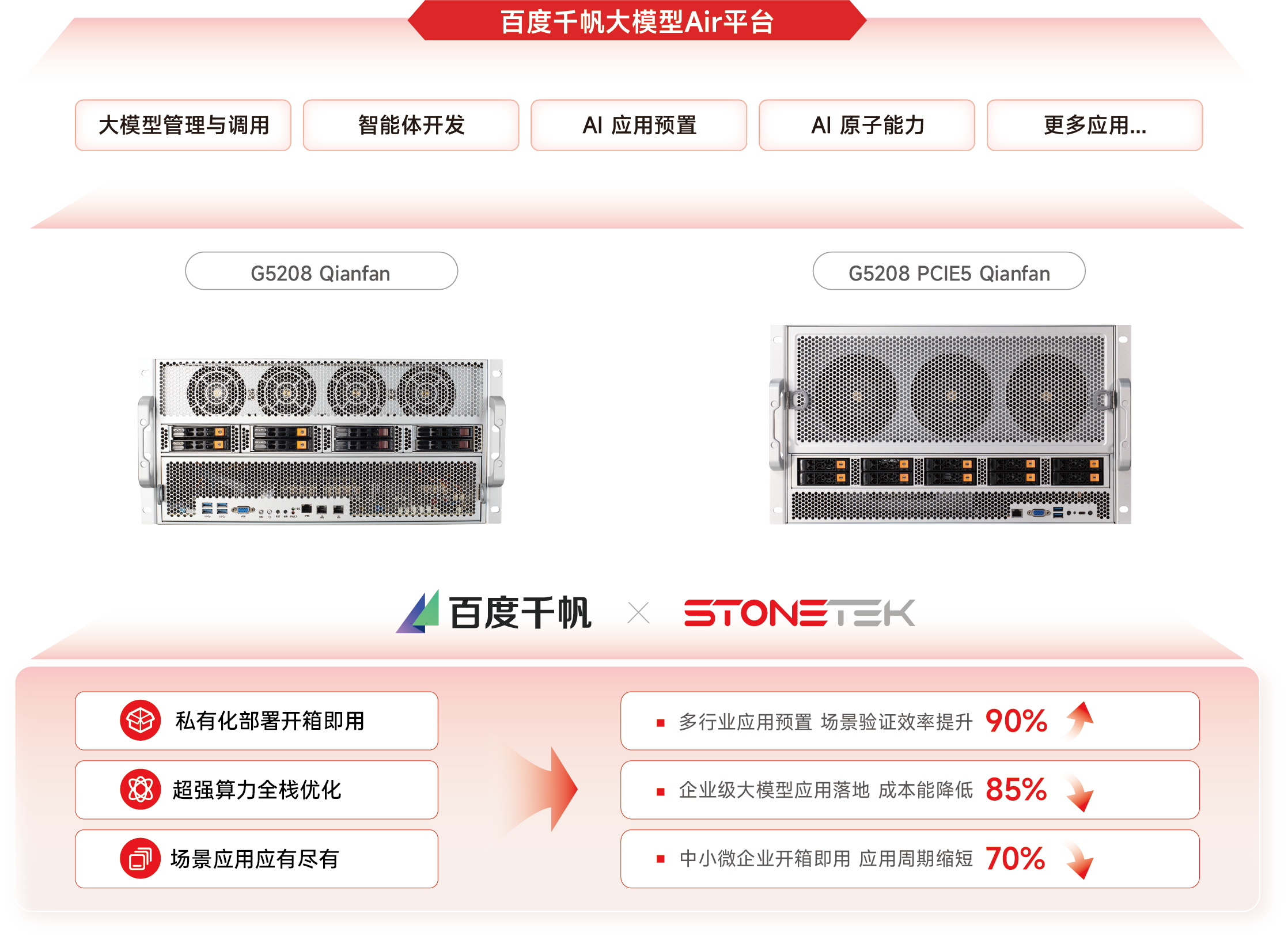 此外,G5208 Qianfan还提供了一站式多模态数据管理与处理能力,为模型训练和AI应用提供高质量的“数据燃料”,解决了模型训练和AI应用中,覆盖多模态数据采集、转换、处理、检索、服务等数据治理全生命周期环节的全链路诉求。通过一体四核的能力,端到端帮助用户降本增效,通过具体实践,可以显著的帮助用户降本增效,即通过多模态数据统一存储及管理,并支持GPU、CPU混合调度及分布式加速,助力企业客户处理提效600%,计算降本30%;通过高效协同的开发平台、场景化模版及Data到AI的通畅链路,助力企业客户开发提效30%;通过向量、全文、分析场景三合一的多模态检索引擎,助力企业客户检索存储降本80%。