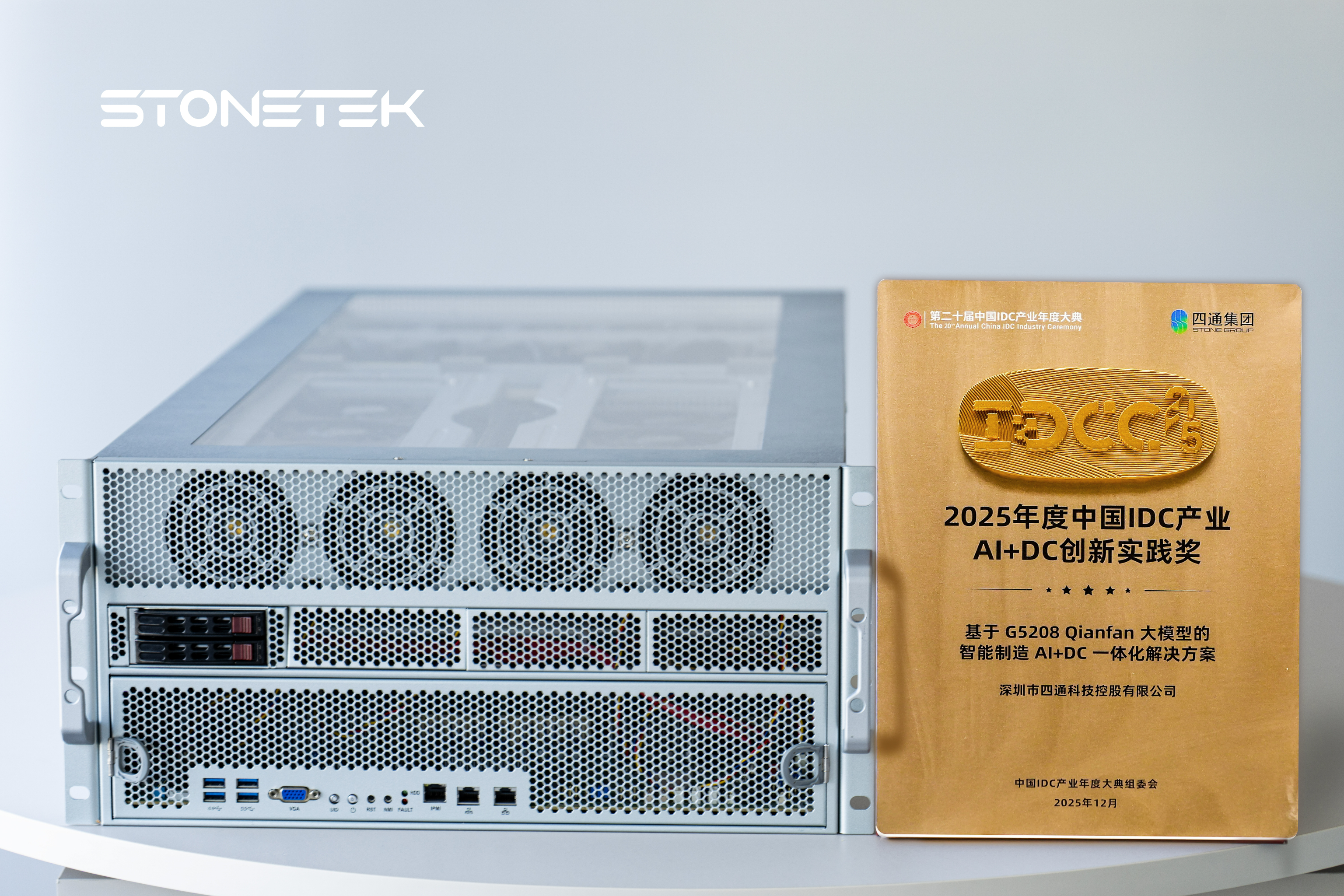 2025年度“中国IDC产业年度评选”颁奖典礼近日于北京隆重举行,集中表彰了一批在算力技术创新与产业融合方面取得突破的代表性企业和项目。其中,STONETEK G5208 Qianfan大模型的智能制造AI+DC一体化解决方案凭借其在智算融合与场景落地方面的突出表现,荣获“2025年度中国IDC产业AI+DC创新实践奖”。
